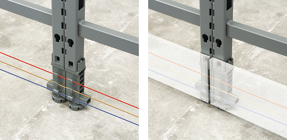 하부 패널의 수평조절 어저스터는 하부의 배선 처리가 편리합니다.