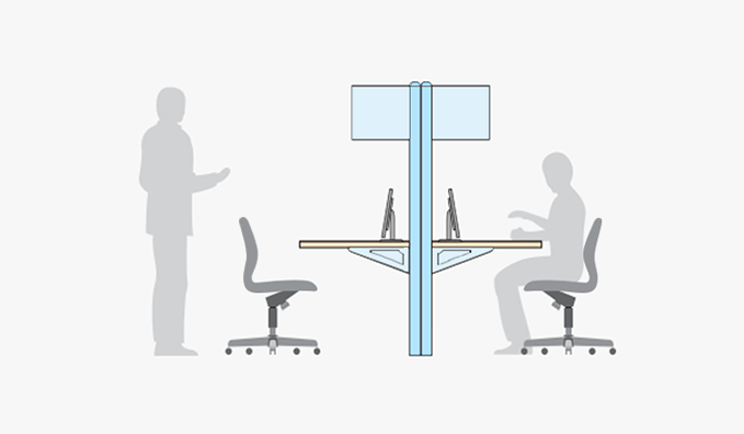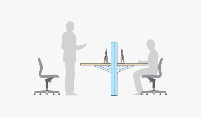 앉은 자세에서 상호 커뮤니케이션을 형성하는 업무를 수행하는 팀의 구성이나 카운터탑 (Counter Desk)을 조합하여 고객을 안내하는 인포메이션 데스크를 구성하는 용도로 활용됩니다.