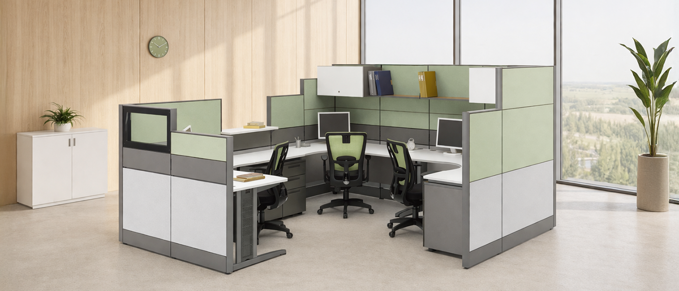 업무공간에서 가장 기본적인 퍼스널 스페이스를 유지해주는 최적의 높이로 근무 환경 내의 동료들과 개인적인 프라이버시 유지와 커뮤니케이션의 소통을 자연스럽게 해주는 적절한 높이로 활용됩니다.