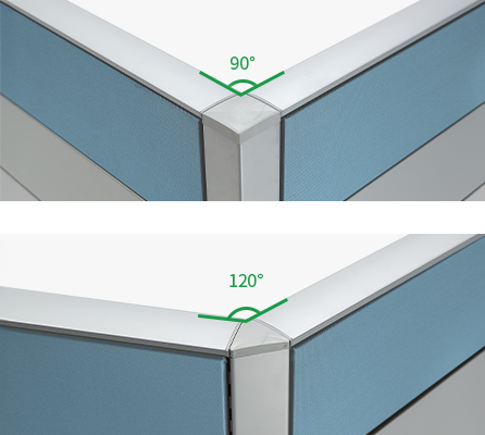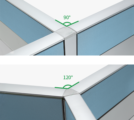 코너가 90° / 120° 를 유지하여 구성되므로 확장 테이블을 결합한 독립공간 구성 시 활용됩니다.