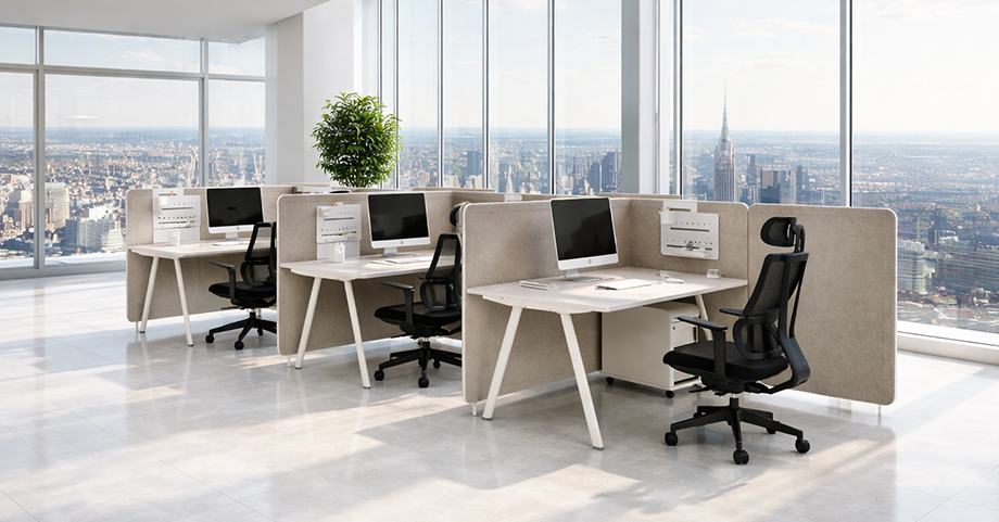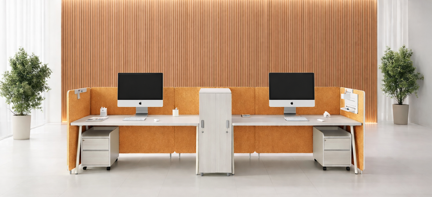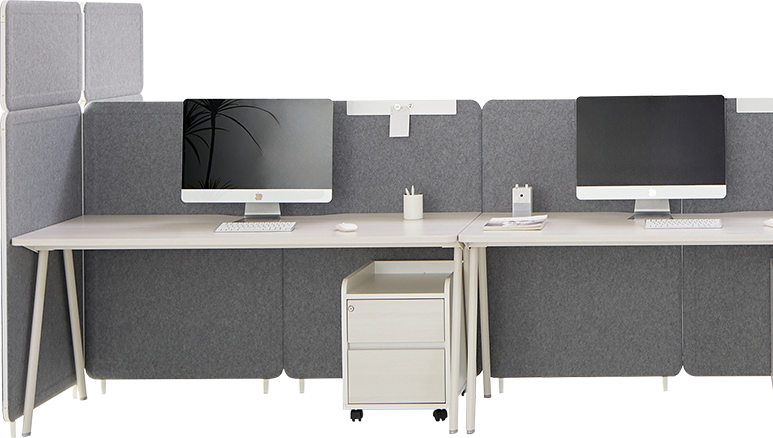 책상 위에 스크린 용도와 기본 레이아웃에 적층이 필요할 때 용이한 시스템으로 프라이버시 워크스테이션을 만들어 드립니다.