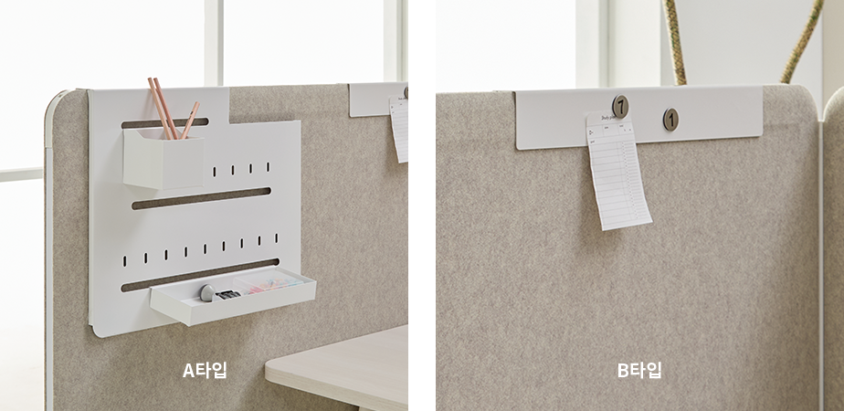 32T 패널에 거치하는 스틸 분체도장 액세서리는 다양한 소품과 호환되며 자석 부착이 가능합니다.
