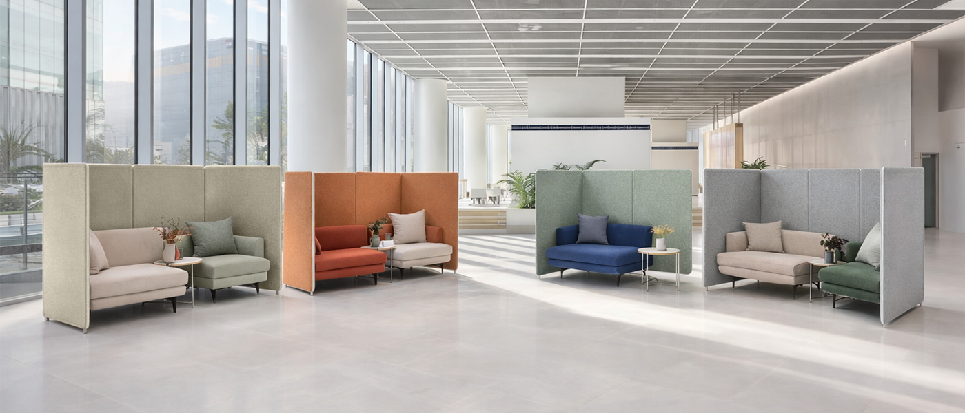 중심 공간에서 다양한 워크스테이션을 확장하는 구성으로 파티션의 측면 활용도가 뛰어납니다.