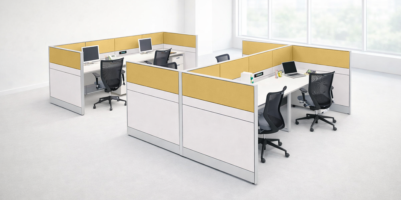 중심 공간에서 다양한 워크스테이션을 확장하는 구성으로 파티션의 측면 활용도가 뛰어납니다.